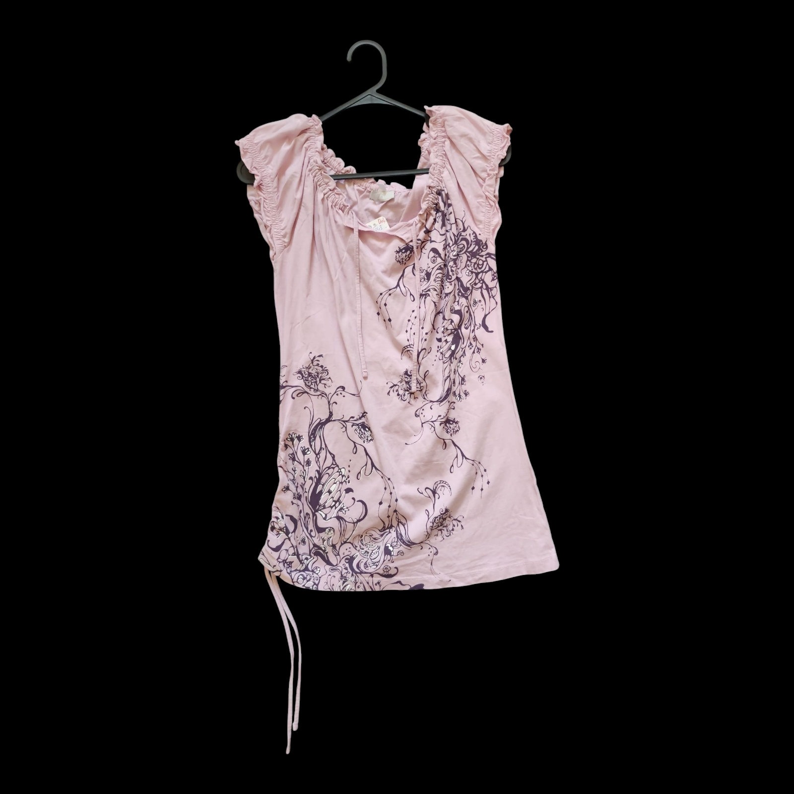 Trotz des gebrauchten Zustands ist das Kleidungsstück in guter Verfassung; es weist keinerlei Beschädigungen wie Risse oder Löcher auf. Die Pflege des Tops gestaltet sich unkompliziert: Es kann bei 30 °C in der Maschine gewaschen und bei niedriger Temperatur gebügelt werden, allerdings sollte es nicht im Trockner getrocknet werden. Ergänzen Sie Ihre Garderobe mit diesem einzigartigen Stück, das unkomplizierte Pflege mit einem angenehmen Tragegefühl kombiniert.