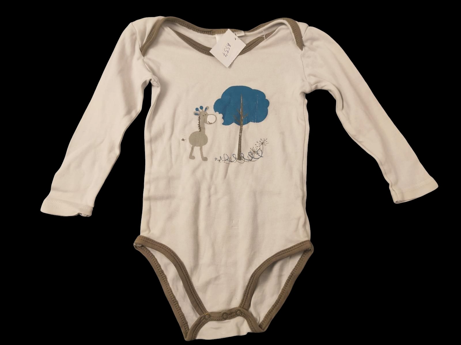 Gefertigt aus hochwertiger Baumwolle, bietet dieser Body Ihrem Baby den nötigen Komfort und ein angenehmes Tragegefühl. Dank der Maschinenwaschbarkeit bei 40° ist die Reinigung ein Kinderspiel. Der Body befindet sich in einem sehr guten Zustand, ohne Flecken, Risse oder Löcher, und ist bereit, Ihrem Kind als kuscheliger Begleiter zur Verfügung zu stehen.