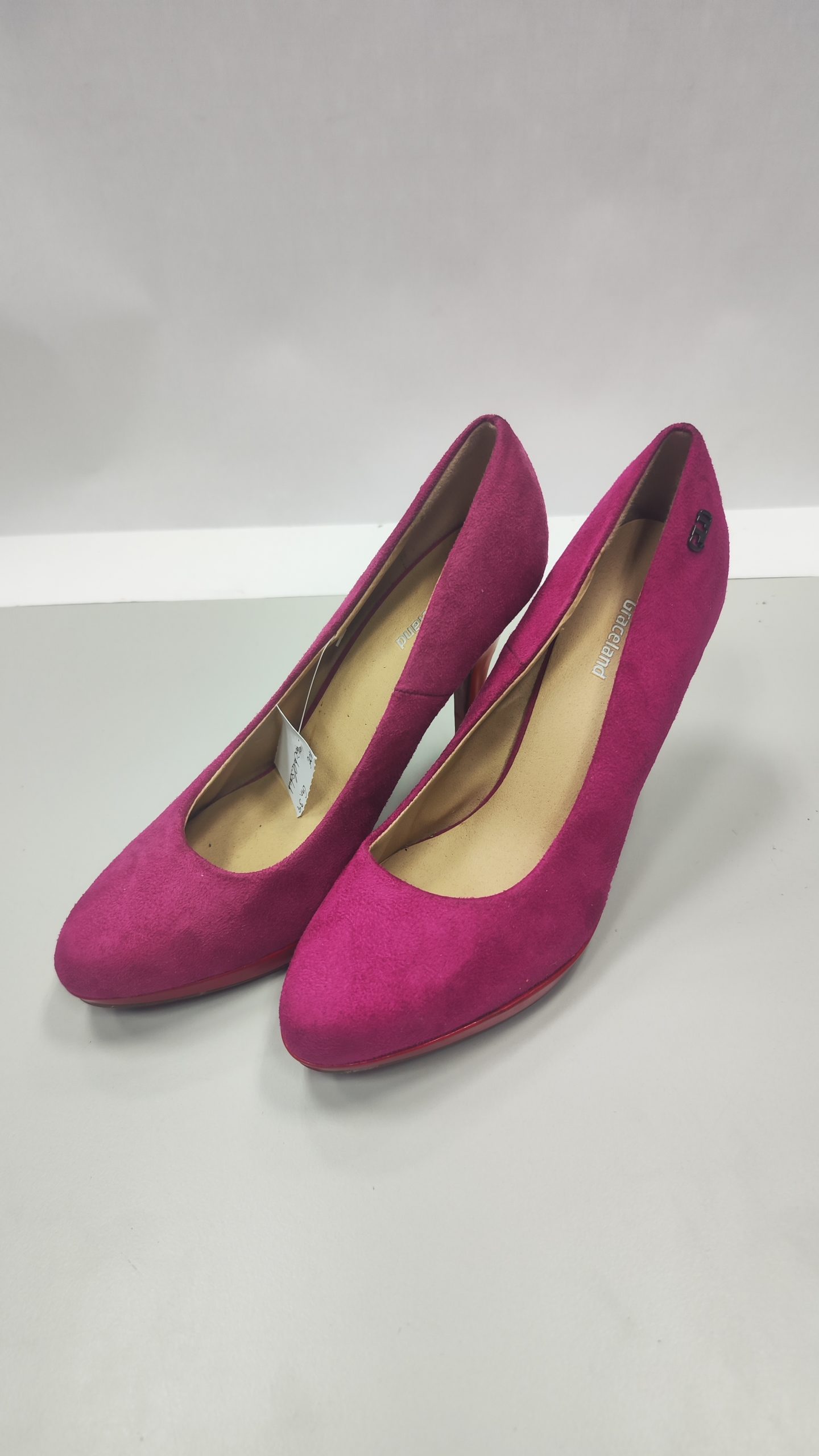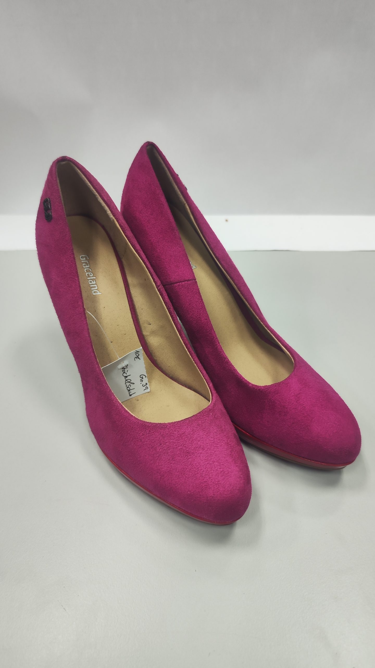 Diese eleganten Damenschuhe in Form von Stöckelschuhen bzw. High Heels der Marke Graceland bieten Ihnen einen stilvollen Auftritt bei jeder Gelegenheit. Mit ihrer klassischen Größe 39 sind sie perfekt für Damen, die Komfort und Stil miteinander verbinden möchten. Die Stöckelschuhe zeigen leichte Gebrauchsspuren, die jedoch den ästhetischen Gesamteindruck nicht beeinträchtigen. Sie zeichnen sich durch eine Mischung aus zeitlosem Design und hochwertiger Verarbeitung aus, die Ihnen sowohl zu formellen Anlässen als auch im Alltag einen eleganten Look verleihen.