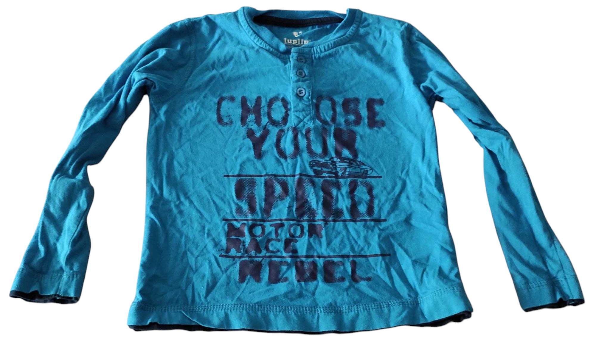Dieses Kinder Langarm Shirt von Lupilu in der Größe 110/116 ist in einem ausgezeichneten gebrauchten Zustand und besticht durch seine leuchtend blaue Farbe. Das Shirt ist aus 100% Baumwolle gefertigt, was für ein angenehmes Tragegefühl sorgt und einen hohen Komfort bietet. Praktische Knöpfe am Kragen sowie ein ansprechender Aufdruck auf der Vorderseite verleihen dem Shirt einen besonderen Charme.